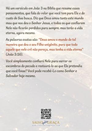 Há um versículo em João 3 na Bíblia que resume esses pensamentos , que fala do valor que você tem para Ele e do custo de Sua busca . Diz que Deus amou tanto este mundo mau que nos deu o Senhor Jesus , e todos os que confiarem Nele não ficarão perdidos para sempre , mas terão a vida eterna , agora mesmo .